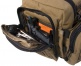 По бокам сумка снабжена двумя карманами так же с креплениями молле. Сумка дополнительно закрывается клапаном с помощью фастекса. Внутри клапана клеенчатый карман для размещения карты или схемы. Сверху, на внешней стороне клапана находится карман с креплением молле.