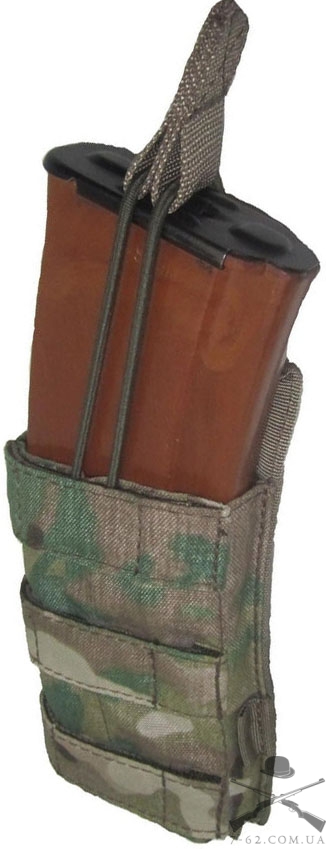 Автоматный магазин удерживается в подсумке эластичным паракордом.