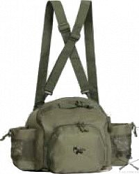 Рюкзак Fox HH-08222OD – это универсальный рюкзак с Х-образной подвесной системой и съёмным поясным ремнём (поясник). особенностью данной системы подвески рюкзака, которая позволяет поместить рюкзак на бёдрах, освободив и разгрузив при этом спину. Также, данная конструкция позволяет использовать ещё один рюкзак, который можно расположить на спине. Кроме того, рюкзак может использоваться как сумка. Рюкзак данной модели станет отличным выбором для охоты, так как не занимает спину и, таким образом, не сковывает движения. Выполнен из высококачественного и прочного нейлона, имеет два основных отделения, которые закрываются при помощи молнии-застёжки, боковые отделения с утяжками и фиксаторами. Регулируемые лямки позволяют отрегулировать комфортную высоту крепления рюкзака. Съёмный, мягкий, регулируемый поясник с поясными стабилизаторами. Поясник фиксируется при помощи защелки «фастекс»- на пояснике расположено крепление M.O.L.L.E. Это простая конструкция в виде прочных петелек для подвески дополнительных подсумков. Кроме того, внешняя навеска позволяет привесить необходимый инвентарь поверх рюкзака.